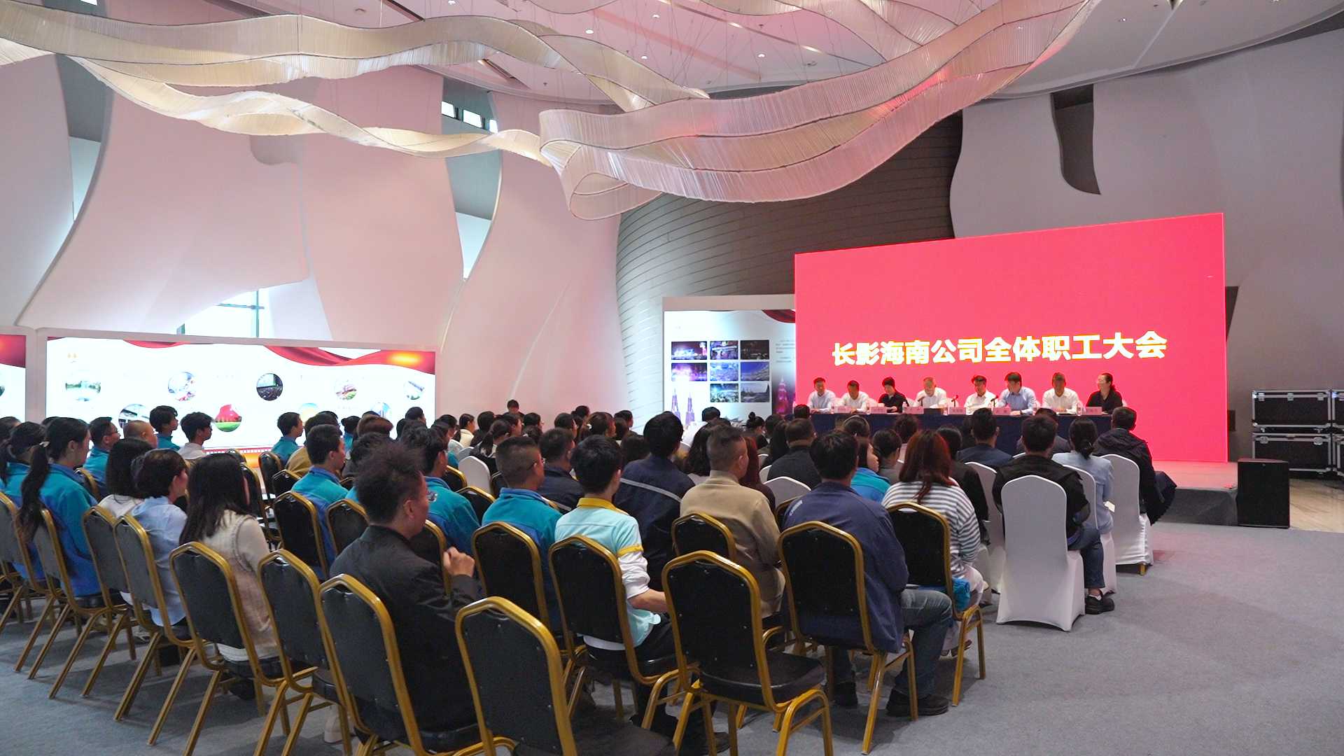 2025年12月3日,长影集团党委书记、董事长庄严组织召开全体职工大会,全面总结各项亮点工作,系统部署后续重点任务,推动企业高质量发展。会议严格按照四项议程有序推进,依次完成宣读长影海南公司董事长任职决定、新任董事长作表态发言、集团总经理作管理表态发言、集团党委书记作总结讲话等环节。长影集团党委副书记张光临、副总经理刘威、副总经理王亚林、党办、人力视频参会,长影海南公司班子成员及全体在岗职工参加会议。