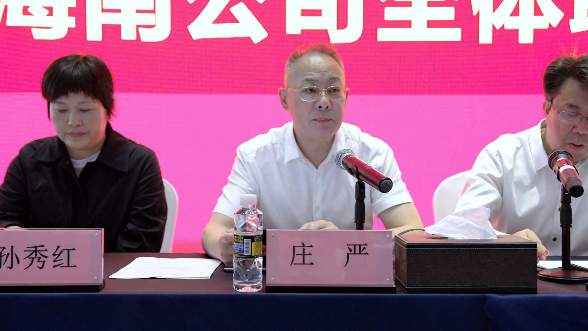 栾国栋总经理作为长影集团分管海南工作及海南专班前线负责人,作三点表态发言:一是坚决拥护决策。省委宣传部、集团党委的人事安排精准补齐了长影海南公司在财务融资、资本运作及影视产业板块发展等领域的短板,在长影集团人员精简的背景下,此次增派骨干力量支持海南专班工作,充分体现了长影集团对长影海南项目的高度重视,两位同志的到任,必将为长影海南公司发展注入强劲动力;二是坚决提供支持。长影海南公司各核心部门要第一时间向孙毅、王亚林同志提供各类文字材料,包括具体问题、工作经验及实践做法,其本人也将全面扎实做好传帮带工作;三是坚决抓好落实。在庄严书记的关怀及集团党委的领导下,将坚决锚定年度经营指标全力攻坚,带领长影海南公司彻底扭转被动的发展局面。