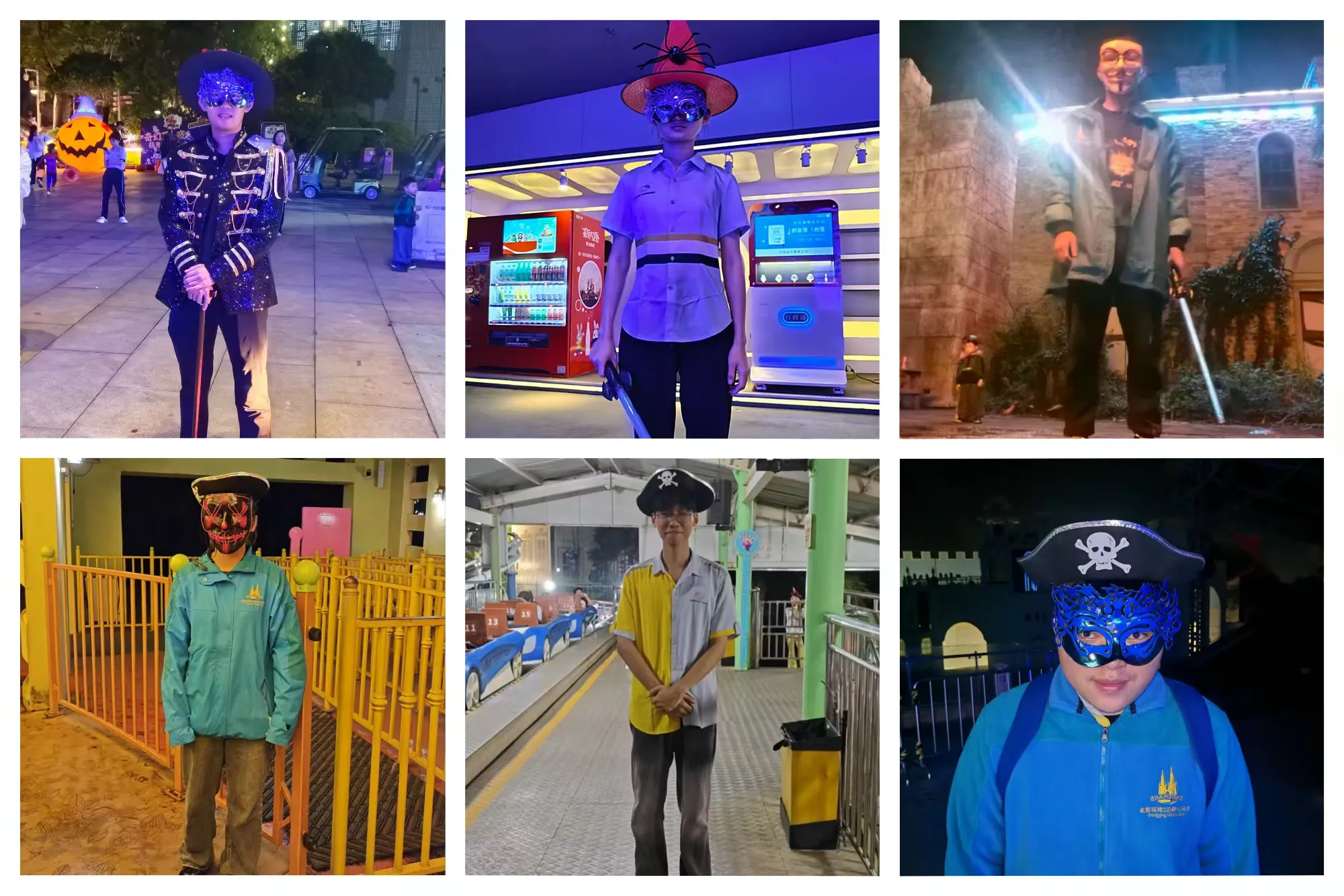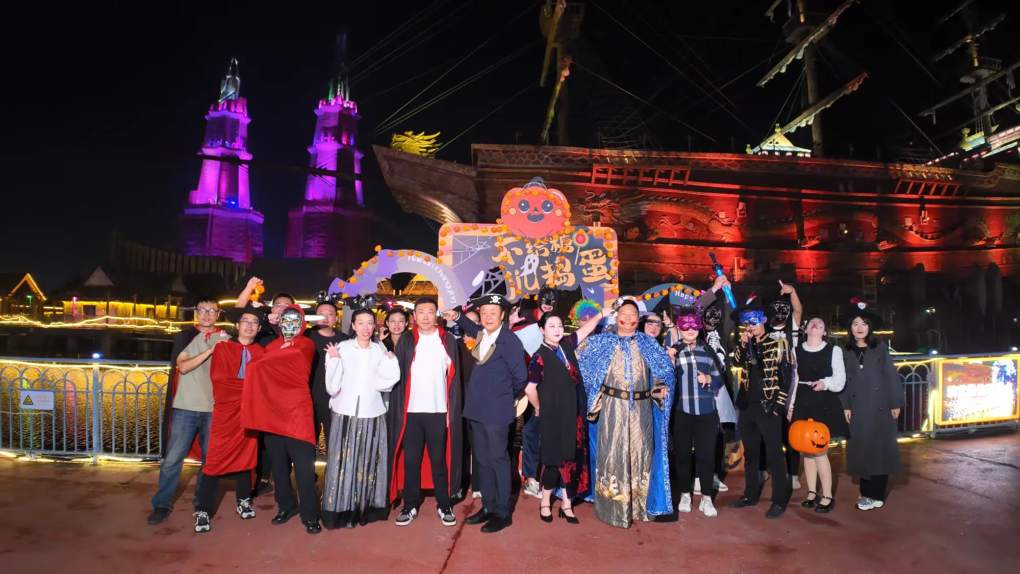 2025年10月31日晚,海南长影奇幻乐园被巨型南瓜灯的暖光与绚烂荧光的装饰交织点亮,“奇幻万圣夜 萌鬼讨糖记”主题活动火爆启幕。夜幕降临,光之密钥、百鬼夜行花车巡游、无人机表演纷纷登场,叠加Coser创意评选、古堡魅影寻宝等限定环节,为市民游客打造全新沉浸式万圣狂欢游玩体验。除了精彩纷呈的演艺节目,我司全体职工首次以主题妆造入园扮演NPC,成为活动极具辨识度的特色亮点,彰显了全员参与的团队活力与热情。